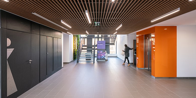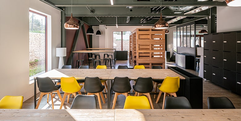 Un espace aménagé de 130 m² en Rdc avec 70 places assises, donnant sur une terrasse extérieure plein Sud, permet aux collaborateurs à la fois de déjeuner, de travailler ou encore de se détendre dans un espace dédié.