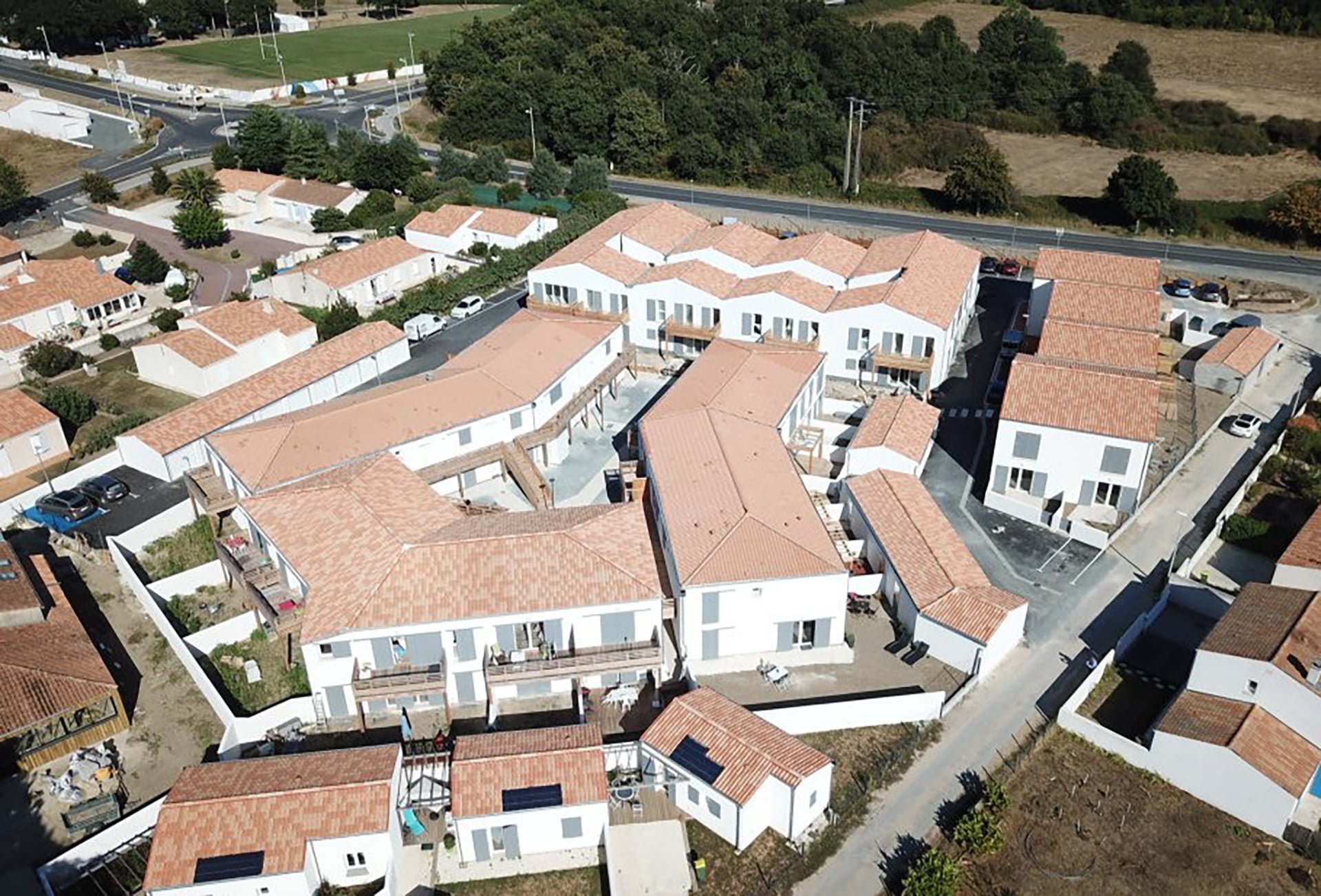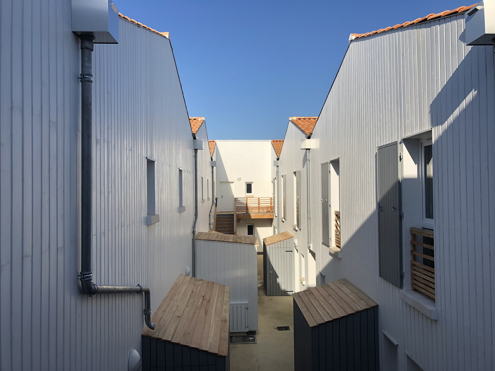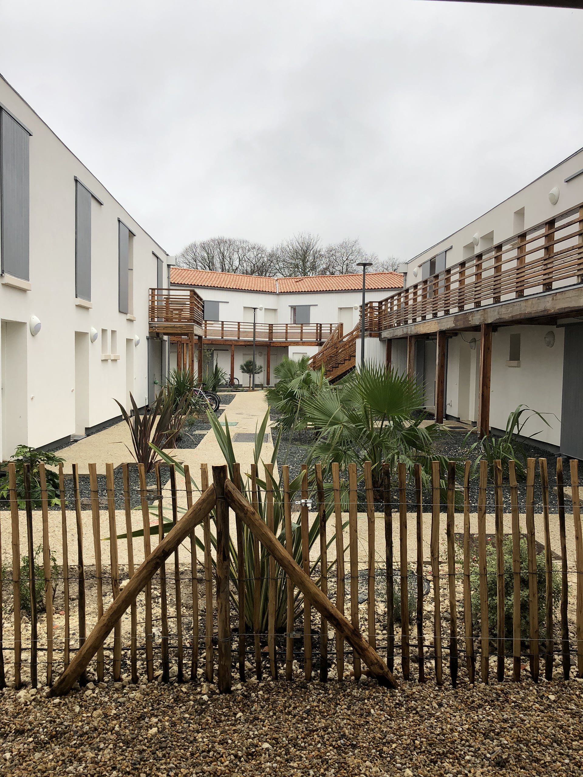 61 logements dans trois bâtiments R+1 en structure bois parfaitement intégré au style Oléronais