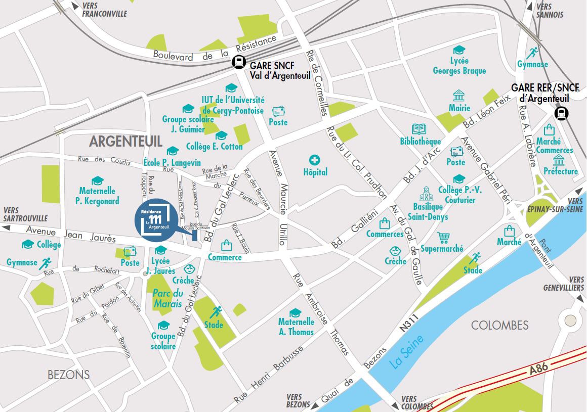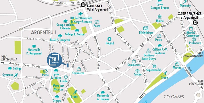 C’est au cœur d’un quartier résidentiel, paisible et en plein renouveau, que s’implante La résidence 111. Tout est ici réuni pour vous offrir une véritable qualité de vie avec toutes les commodités du quotidien, non loin du centre-ville historique d’Argenteuil. Vous profiterez ainsi d’un cadre de vie idéal, pratique et épanouissant.